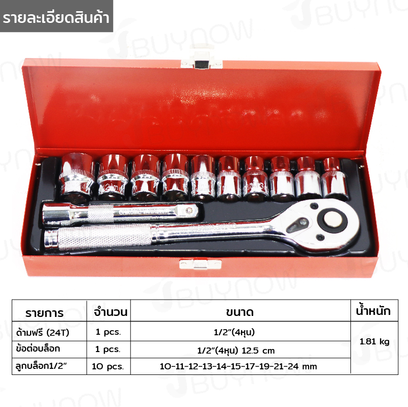 - ชุดบล็อก 12 ชิ้น 1/2 (4หุน) 10-24mm