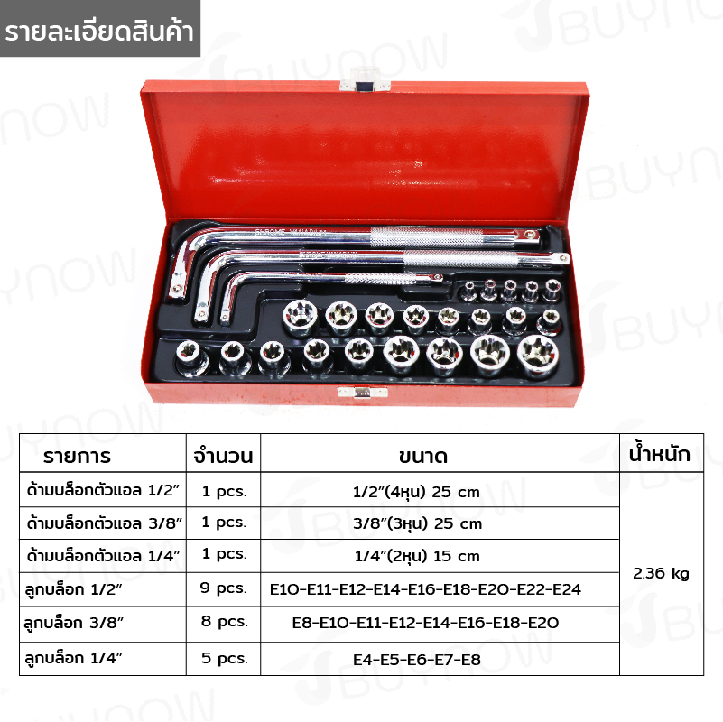 - ชุดบล็อกด้ามแอล 25 ชิ้น 1/2 3/8 1/4