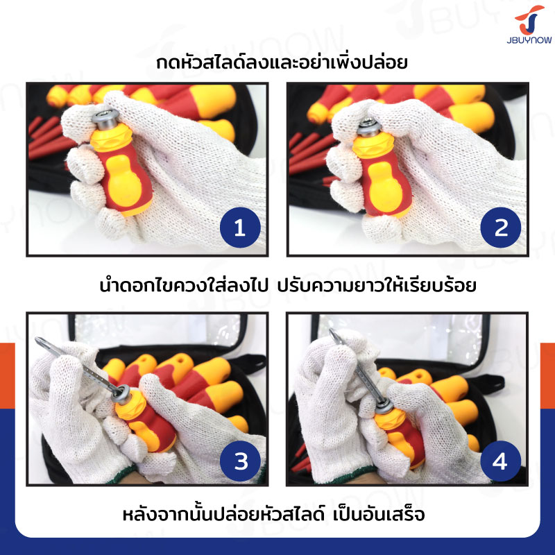 ชุดไขควงหุ้มฉนวนกันไฟฟ้า ไขควงลองไฟ 10 ชิ้น JBUYNOW 2025