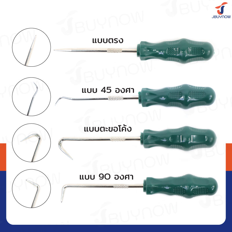 - 4 ชิ้น ประกอบไปด้วย หัวแบบตรง หัว 45 องศา หัว 90 องศา และหัวตะขอโค้ง
