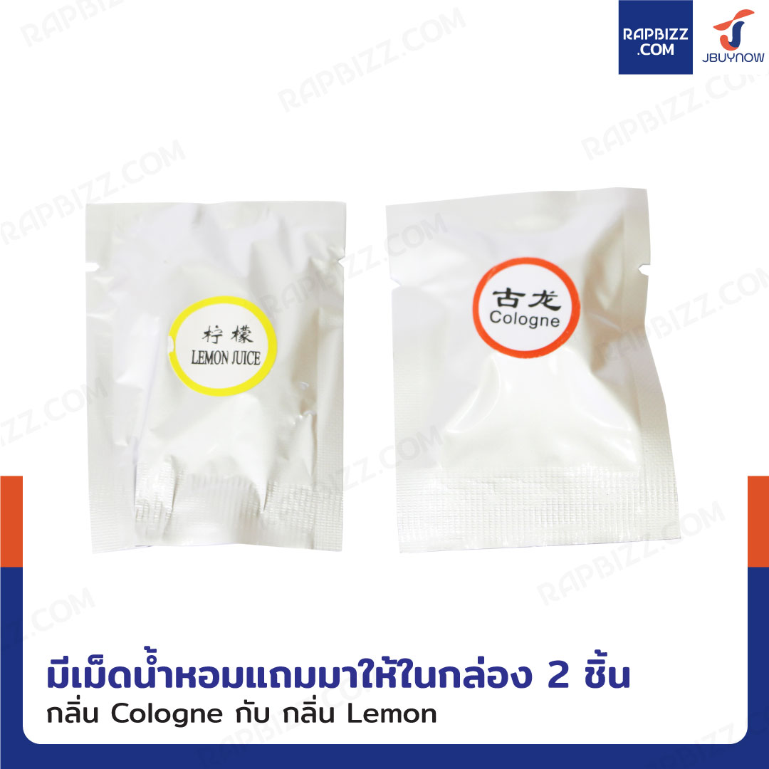 - มีเม็ดน้ำหอมแถมให้ 2 กลิ่น (กลิ่น Cologne, กลิ่น Lemon)