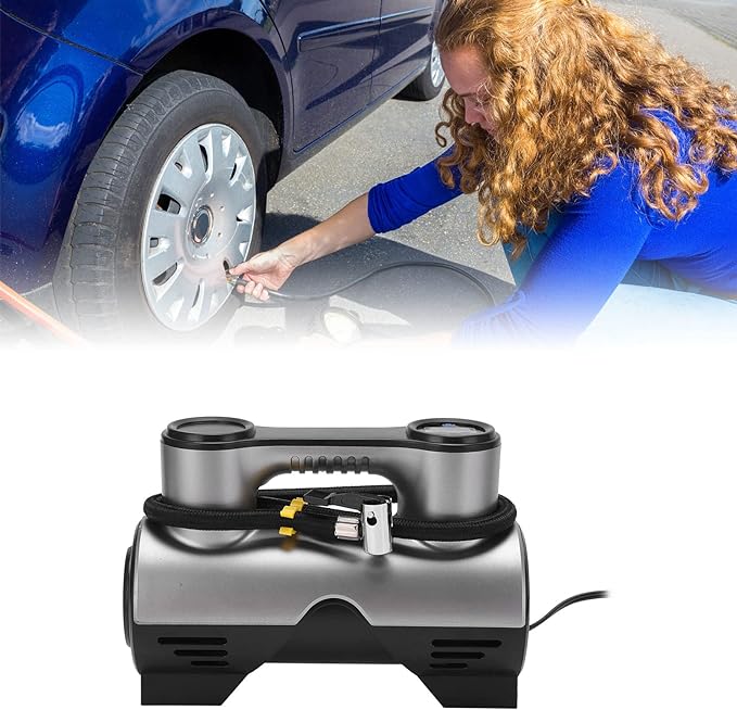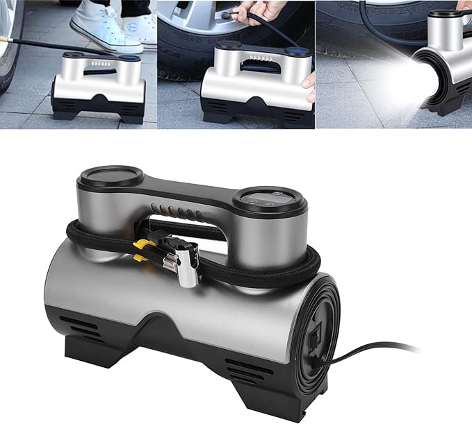 - ปั๊มเติมลมรถยนต์พกพา มีไฟฉาย