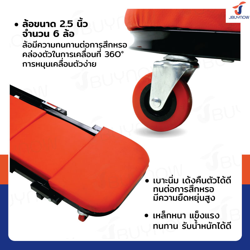 กระดานรองนอนล้อเลื่อน กระดานซ่อมใต้ท้องรถ 2IN1 (แบบปรับนั่งได้) สีแดง JBUYNOW RB240115-17