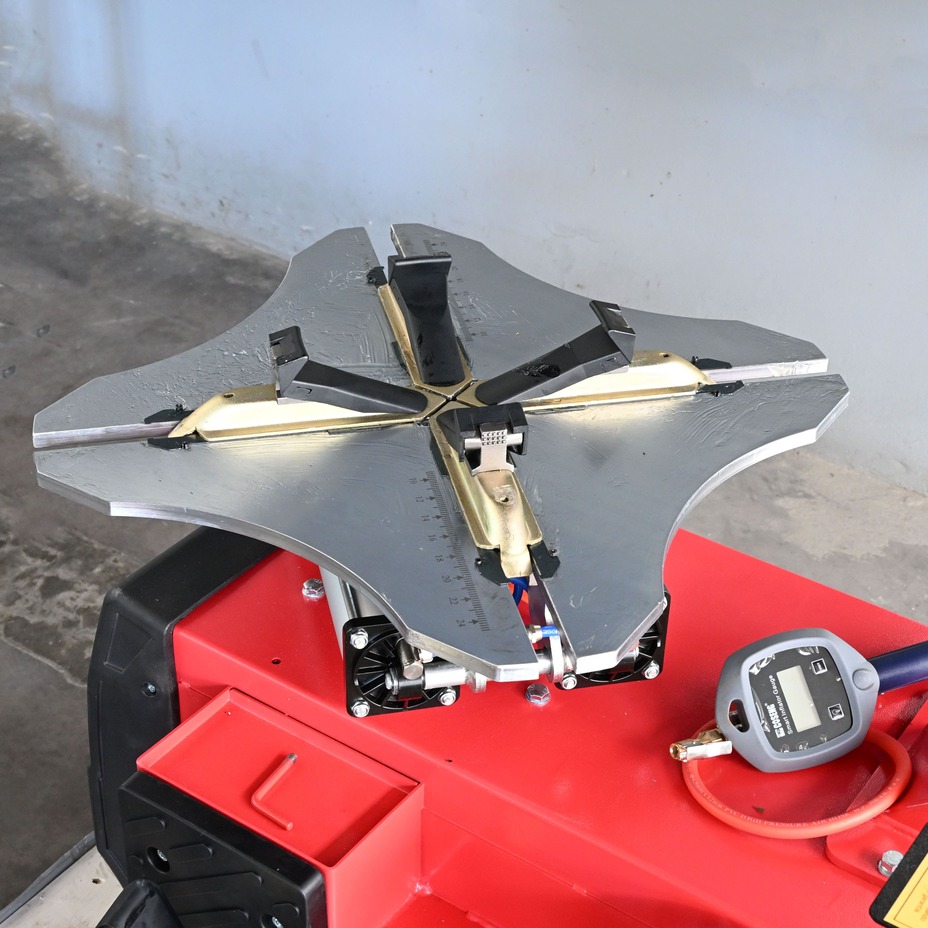 - เครื่องเปลี่ยนยางประเภทนี้มีก้านหนีบ 4 ตัว ที่สามารถปรับได้พร้อมกัน
