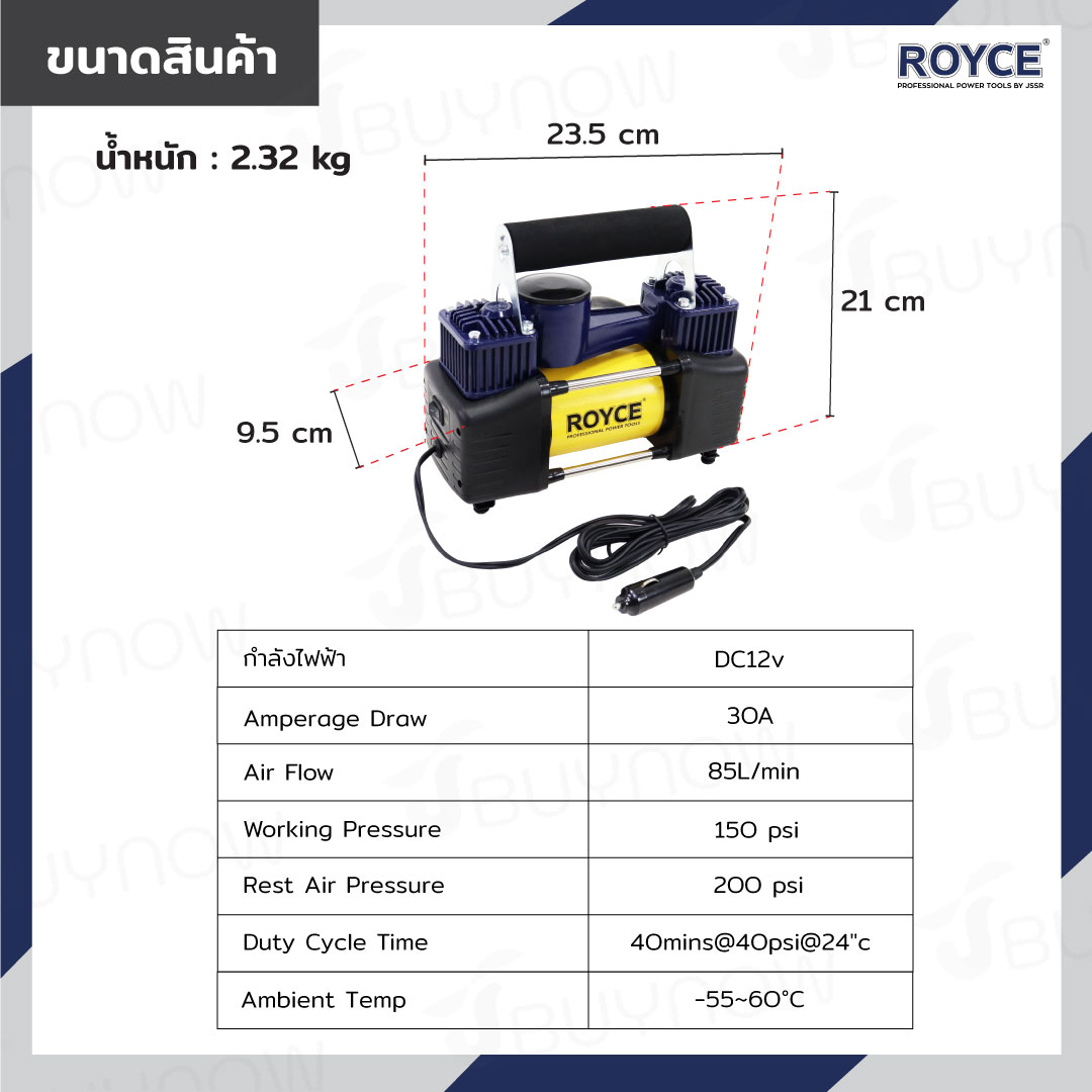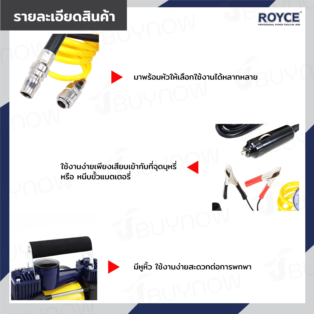 ปั๊มลมรถยนต์ แบบพกพา 12V 85L/min ROYCE JBUYNOW RAC-12V
