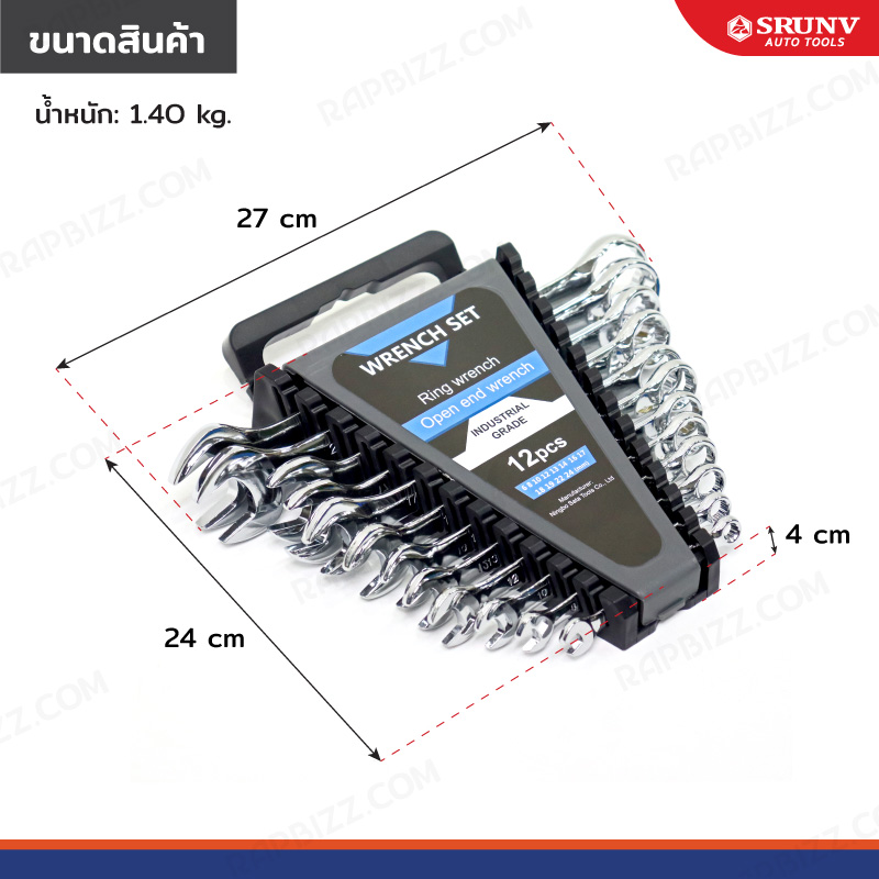 - ชุดประแจแหวนข้างปากตาย 12 ชิ้น เบอร์ 6-24mm