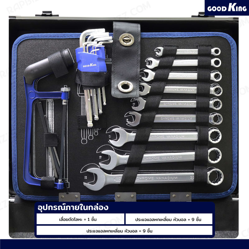 - ประแจเบอร์ 8, 10, 11, 12, 13, 14, 17, 19, 22 จำนวน 9 ชิ้น