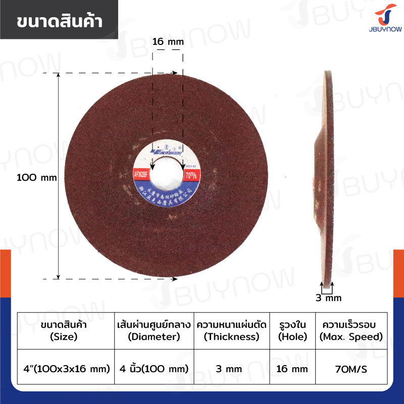 ใบเจียร 4 นิ้ว 100x3x16 mm JBUYNOW TG-005/BOX