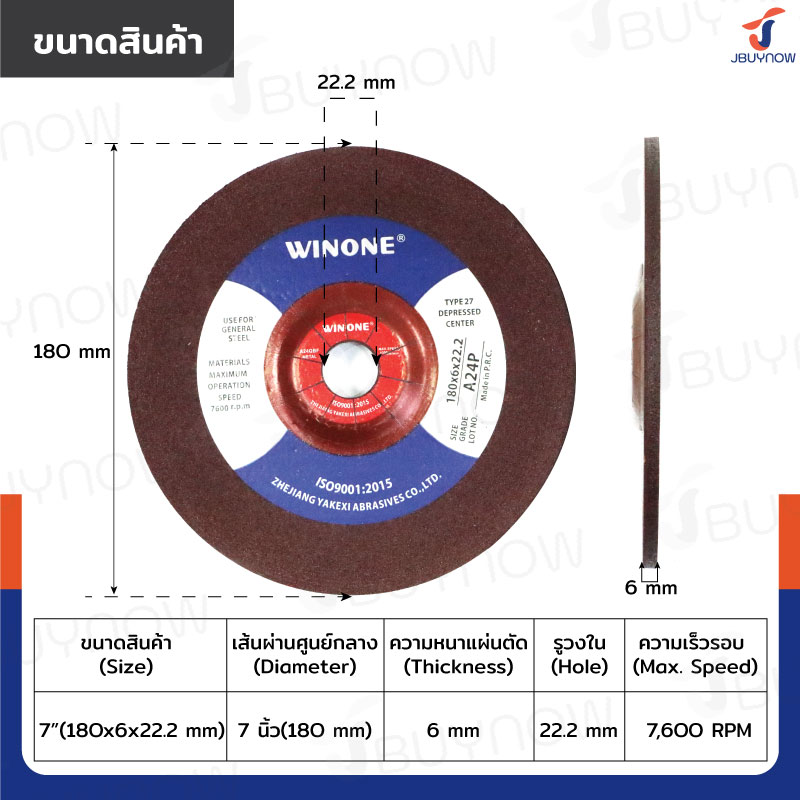 - ขนาดใบเจียร: 180x6x22.2 mm