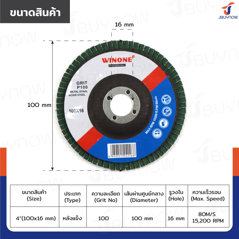 จานทรายซ้อนหลังแข็ง 4 นิ้ว เบอร์ 100 สีเขียว JBUYNOW TG-022/PACK
