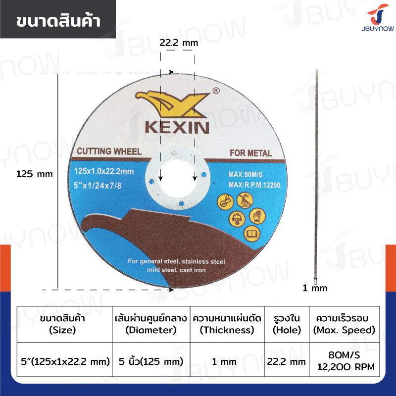 ใบตัดเหล็ก 5 นิ้ว หนา 1 mm 125x1x22.2 mm JBUYNOW TG-026/BOX
