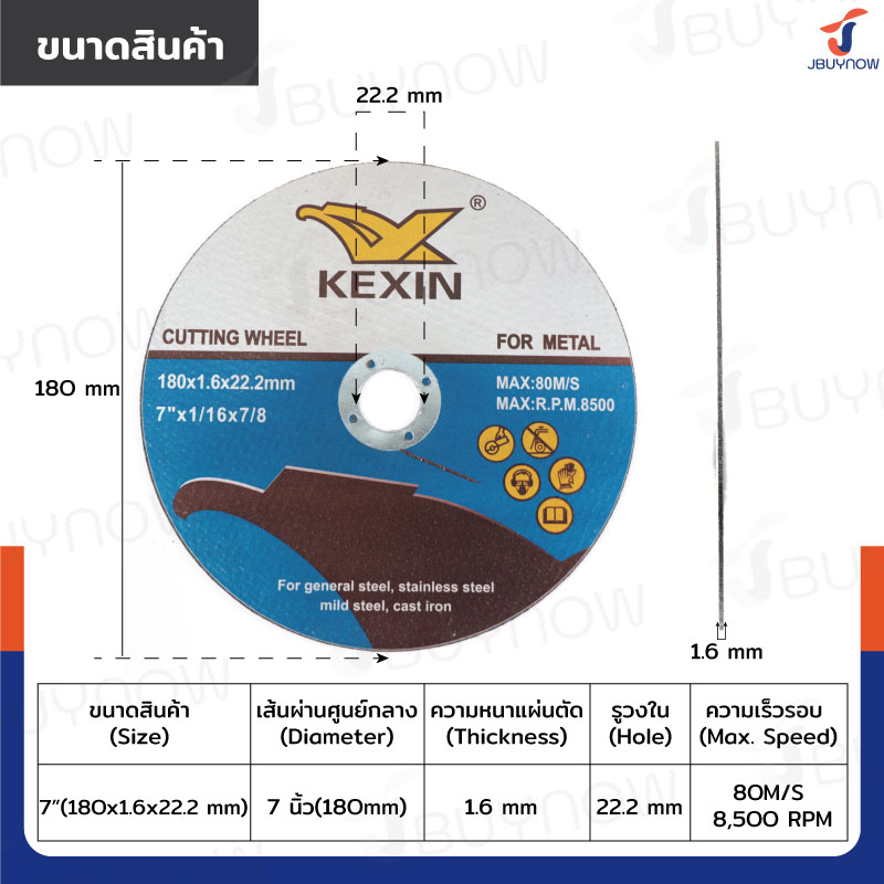 - ขนาดใบตัด: 180x1.6x22.2 mm