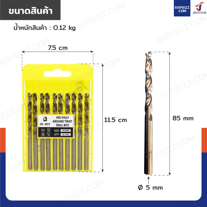 ดอกสว่าน 3/16(5 มม.)ไฮสปีด เคลือบไทเทเนียม เจาะเหล็ก/สแตนเลส/ทองแดง กล่องละ 10 ดอก