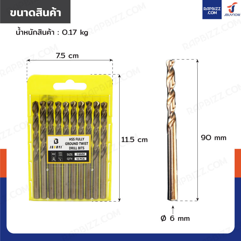 ดอกสว่าน 15/64(6 มม.)ไฮสปีด เคลือบไทเทเนียม เจาะเหล็ก/สแตนเลส/ทองแดง กล่องละ 10 ดอก