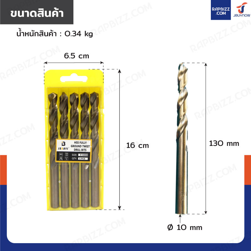 ดอกสว่าน 25/64(10 มม.)ไฮสปีด เคลือบไทเทเนียม เจาะเหล็ก/สแตนเลส/ทองแดง กล่องละ 5 ดอก