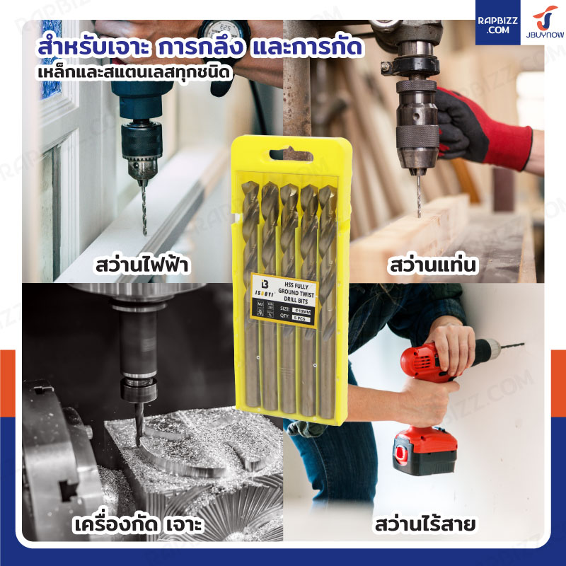 - สามารถใช้กับสว่านไร้สาย สว่านไฟฟ้า สว่านแท่น เครื่องกัด เจาะ อื่นๆ