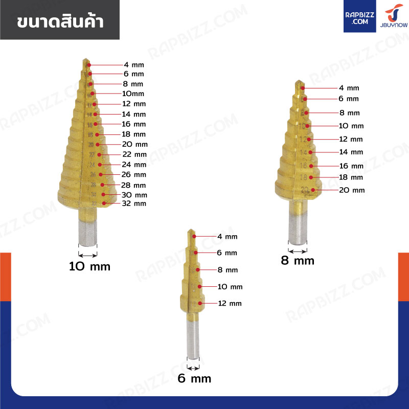 ดอกสว่านเจดีย์ 7 ชิ้น คว้านรู เจาะขยายรู ชุบไทเทเนียม