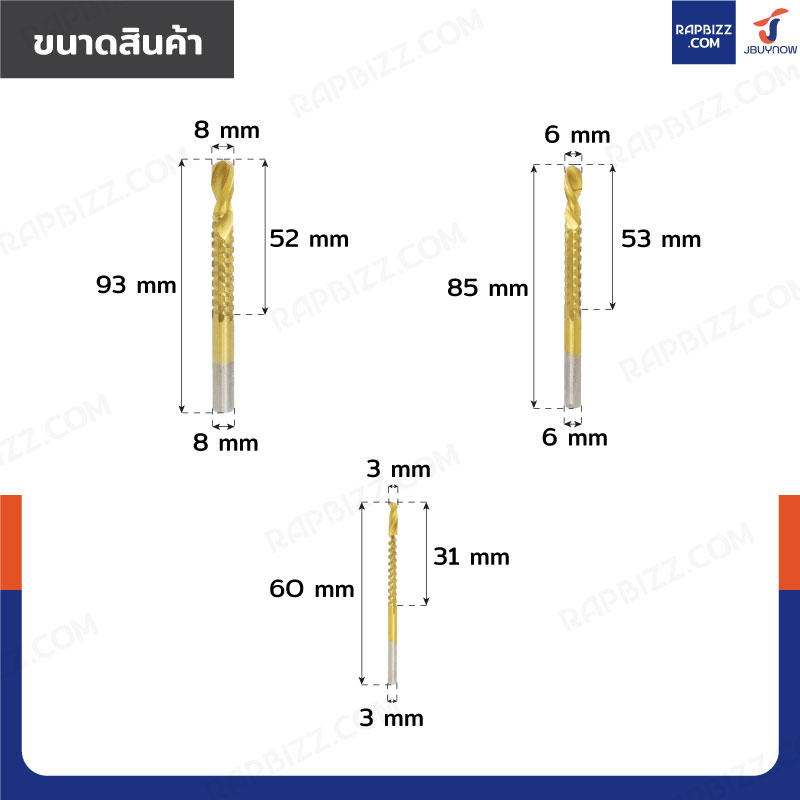 - ผลิตจากเหล็ก HSS ชุบด้วยไทเทเนียม