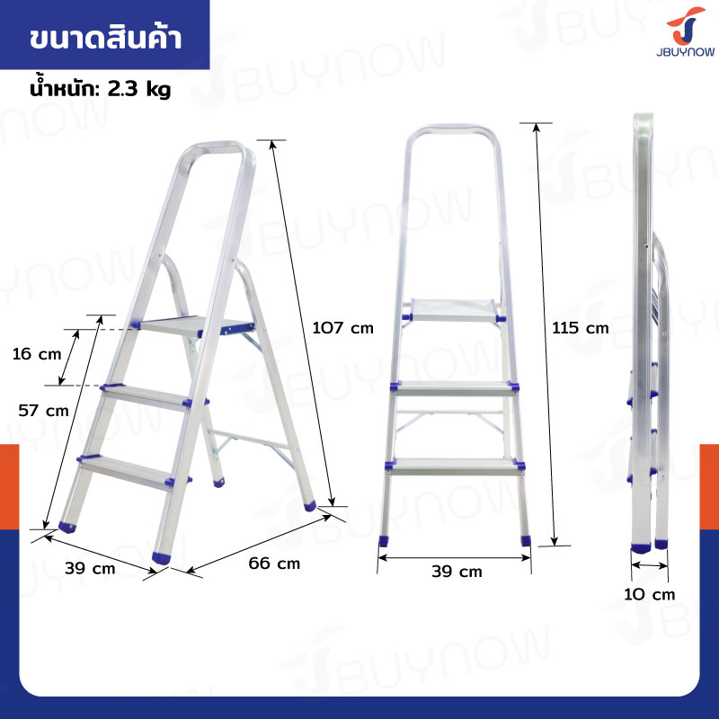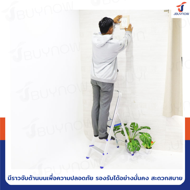 บันไดอลูมิเนียมพับเก็บได้ 3 ขั้น มีราวจับ รับน้ำหนักได้ 150 kg JBUYNOW KND-3