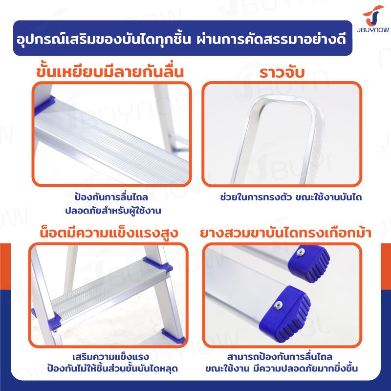 บันไดอลูมิเนียมพับเก็บได้ 4 ขั้น มีราวจับ รับน้ำหนักได้ 150 kg JBUYNOW KND-4