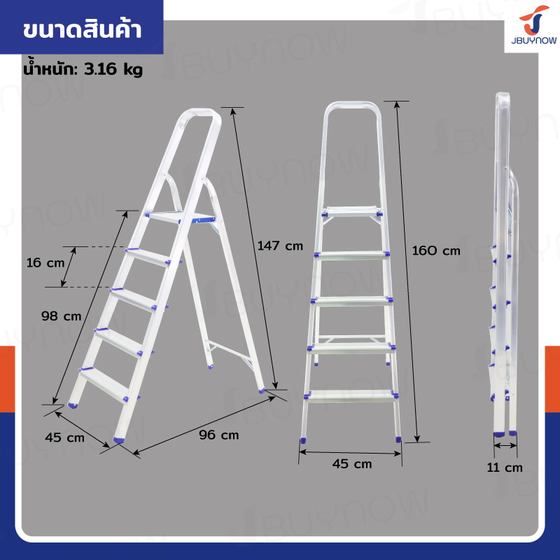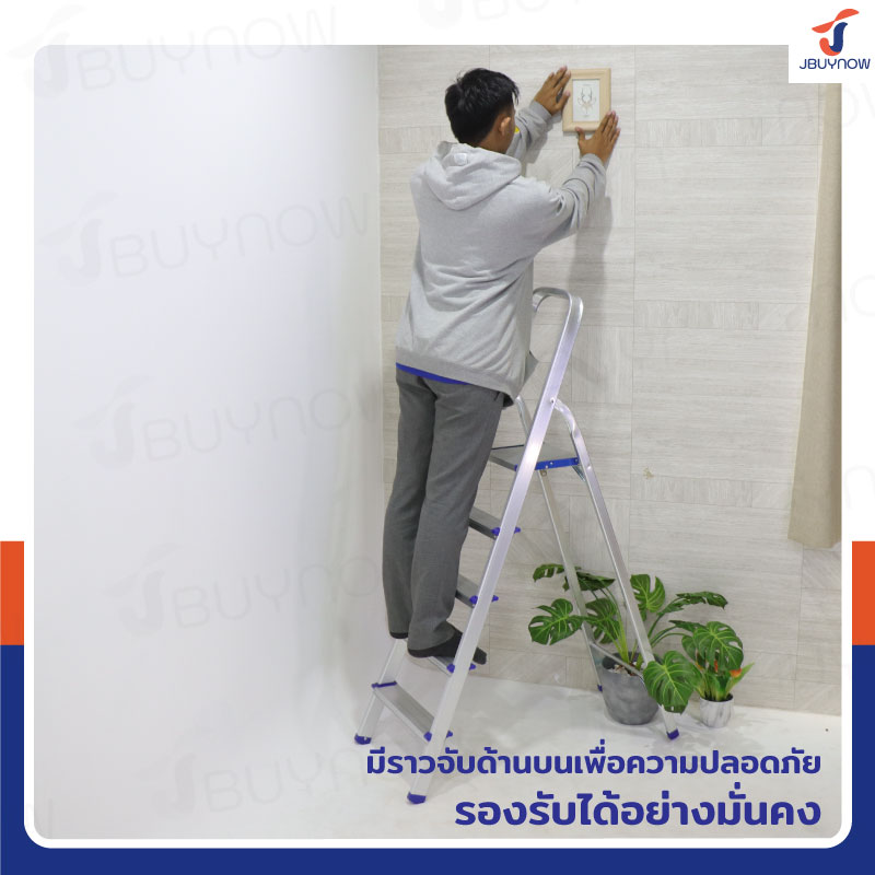 บันไดอลูมิเนียมพับเก็บได้ 5 ขั้น มีราวจับ รับน้ำหนักได้ 150 kg JBUYNOW KND-5