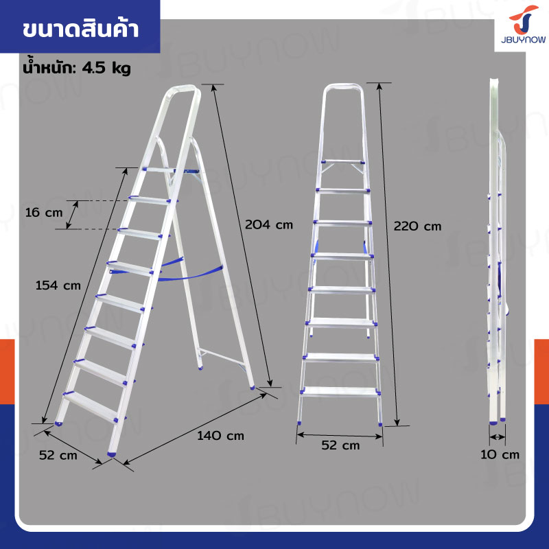 บันไดอลูมิเนียมพับเก็บได้ 9 ขั้น มีราวจับ รับน้ำหนักได้ 150 kg JBUYNOW KND-9