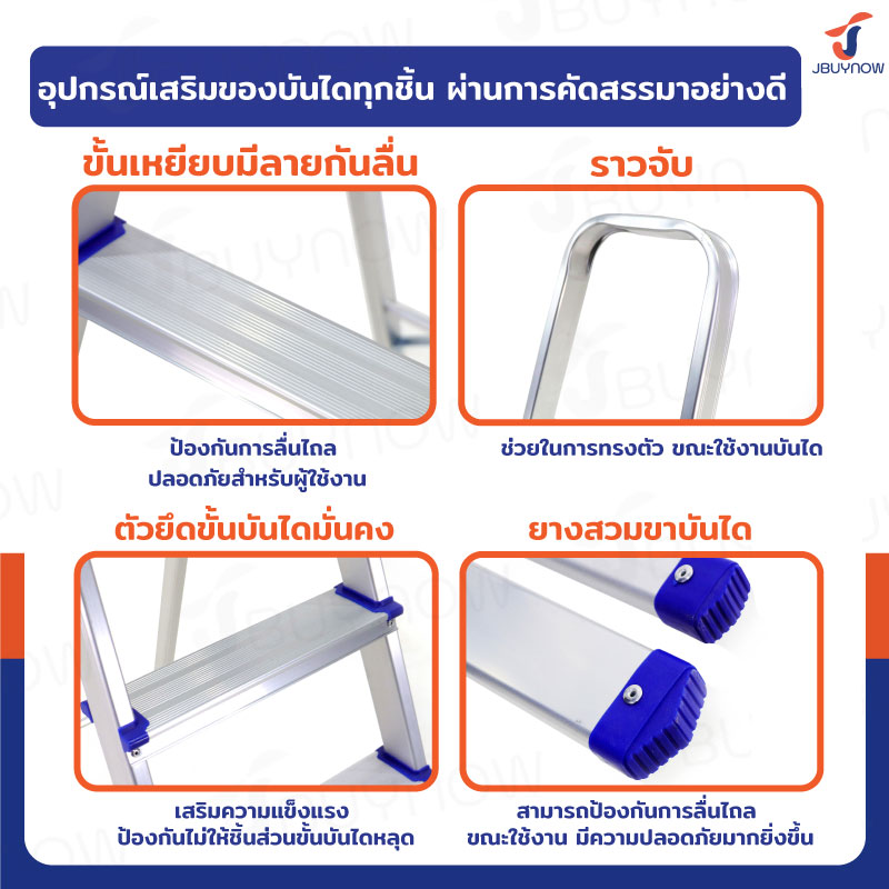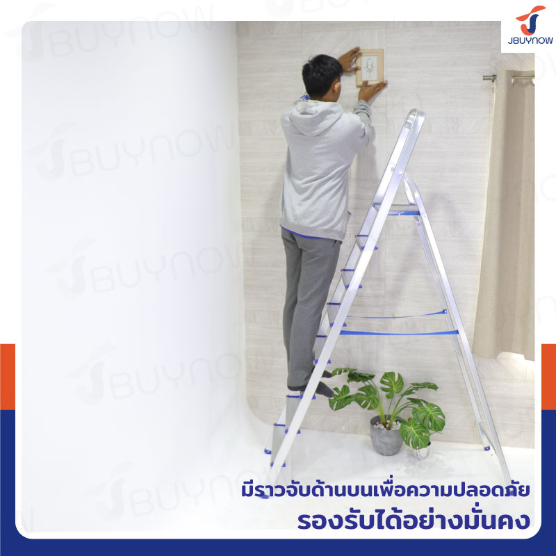 บันไดอลูมิเนียมพับเก็บได้ 7 ขั้น มีราวจับ รับน้ำหนักได้ 150 kg JBUYNOW KND-7