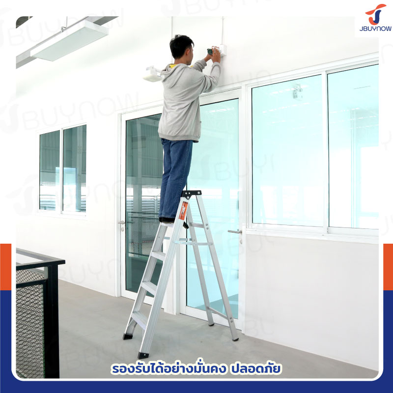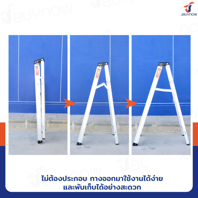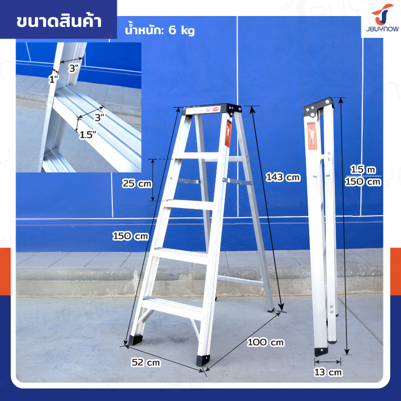 Aluminum ladder บันไดอลูมิเนียม 5 ขั้น 1.5 เมตร ทรงA ขึ้นลงทางเดียว มีที่วางอุปกรณ์ JBUYNOW ARD-15
