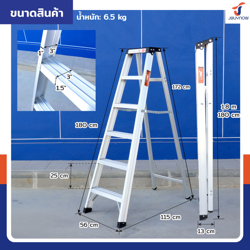 บันได อลูมิเนียม 6 ขั้น 1.8 เมตร ทรงA ขึ้นลงทางเดียว มีที่วางอุปกรณ์ JBUYNOW ARD-18