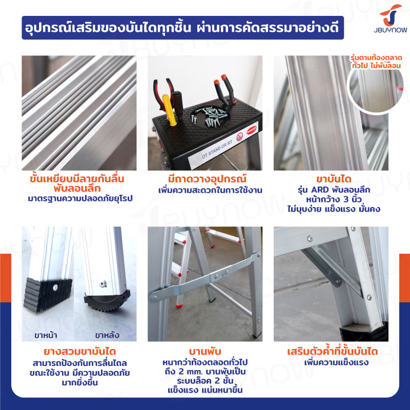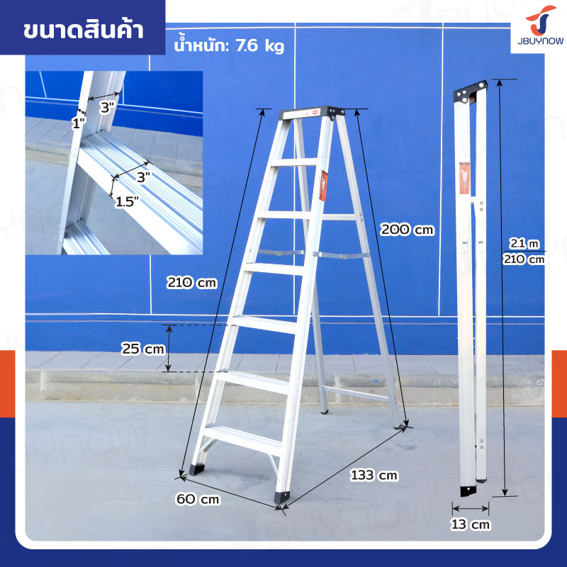 บันได อลูมิเนียม 7 ขั้น 2.1 เมตร ทรงA ขึ้นลงทางเดียว มีที่วางอุปกรณ์ JBUYNOW ARD-21