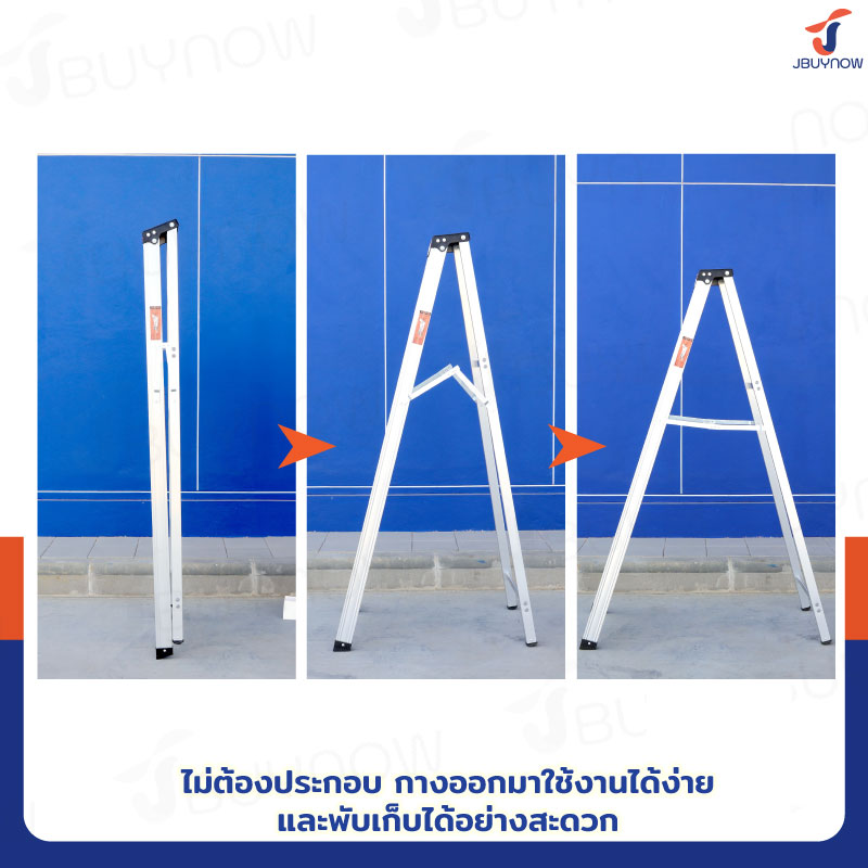Aluminum ladder บันไดอลูมิเนียม 7 ขั้น 2.1 เมตร ทรงA ขึ้นลงทางเดียว มีที่วางอุปกรณ์ JBUYNOW ARD-21