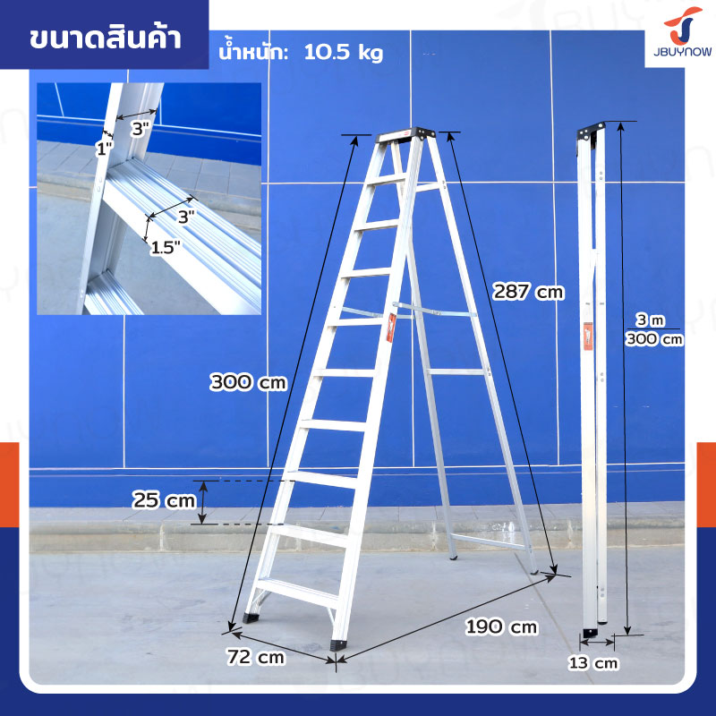 บันได อลูมิเนียม 10 ขั้น 3 เมตร ทรงA ขึ้นลงทางเดียว มีที่วางอุปกรณ์ JBUYNOW ARD-30