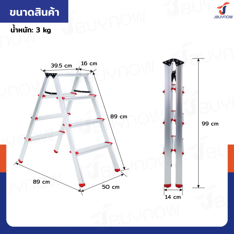 บันไดอลูมิเนียม 4 ขั้น 0.9 เมตร ทรงA ขึ้นลงสองทาง JBUYNOW TD-4