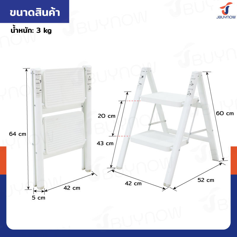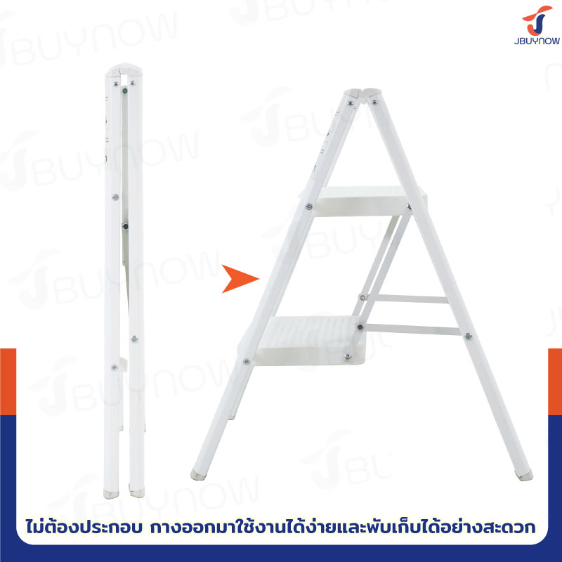 บันไดเหล็ก 2 ขั้น แบบพกพา สไตล์มินิมอล สีขาว JBUYNOW HJT-2