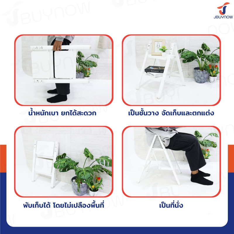 บันได เหล็ก 4 ขั้น แบบพกพา สไตล์มินิมอล สีขาว JBUYNOW HJT-4W