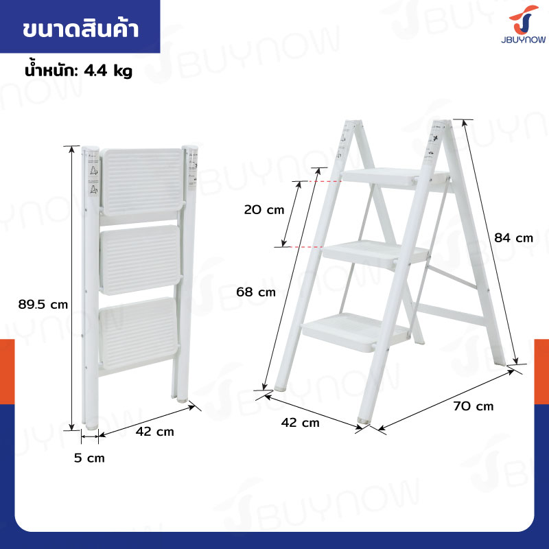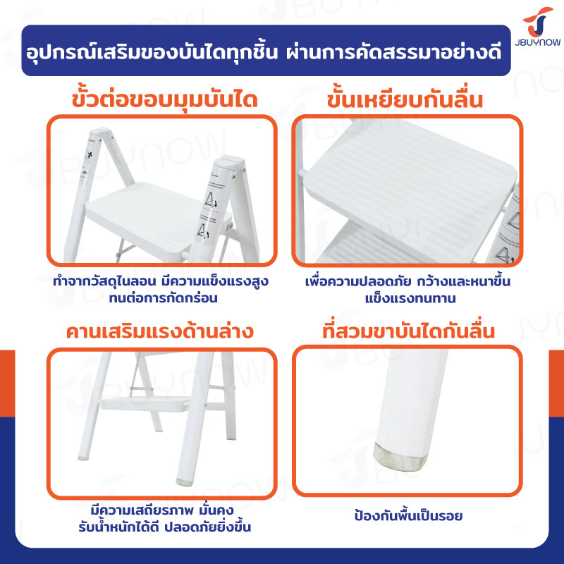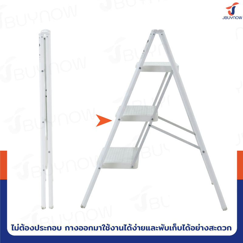 บันได เหล็ก 3 ขั้น 0.8 เมตร แบบพกพา สไตล์มินิมอล สีขาว JBUYNOW HJT-3