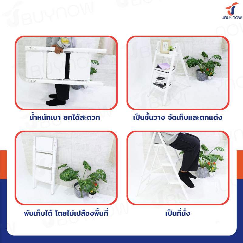บันไดเหล็ก 3 ขั้น แบบพกพา สไตล์มินิมอล สีขาว JBUYNOW HJT-3