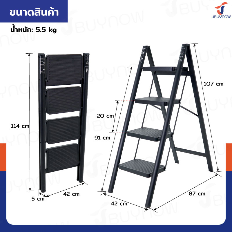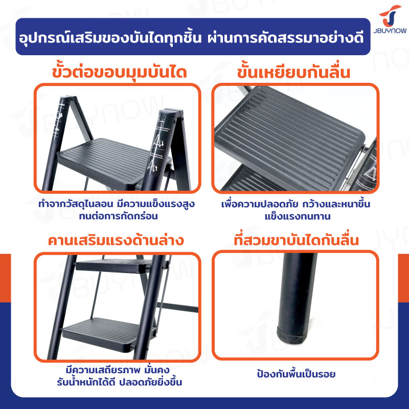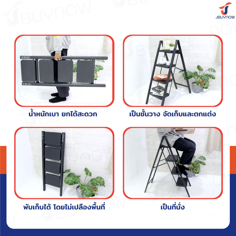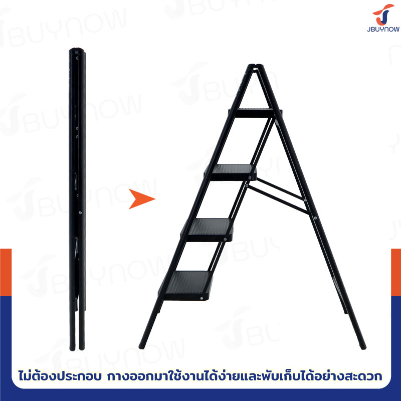 บันไดเหล็ก 4 ขั้น แบบพกพา สไตล์มินิมอล สีดำ JBUYNOW HJT-4