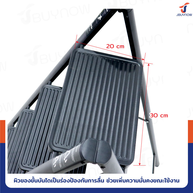 - ผิวของขั้นบันไดเป็นร่องป้องกันการลื่น ช่วยเพิ่มความมั่นคงขณะใช้งาน
