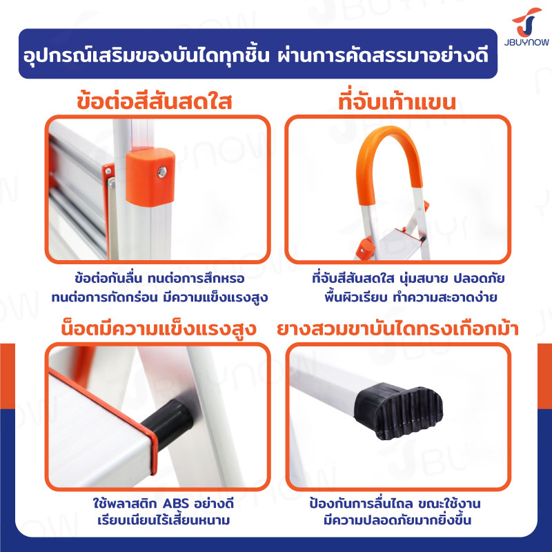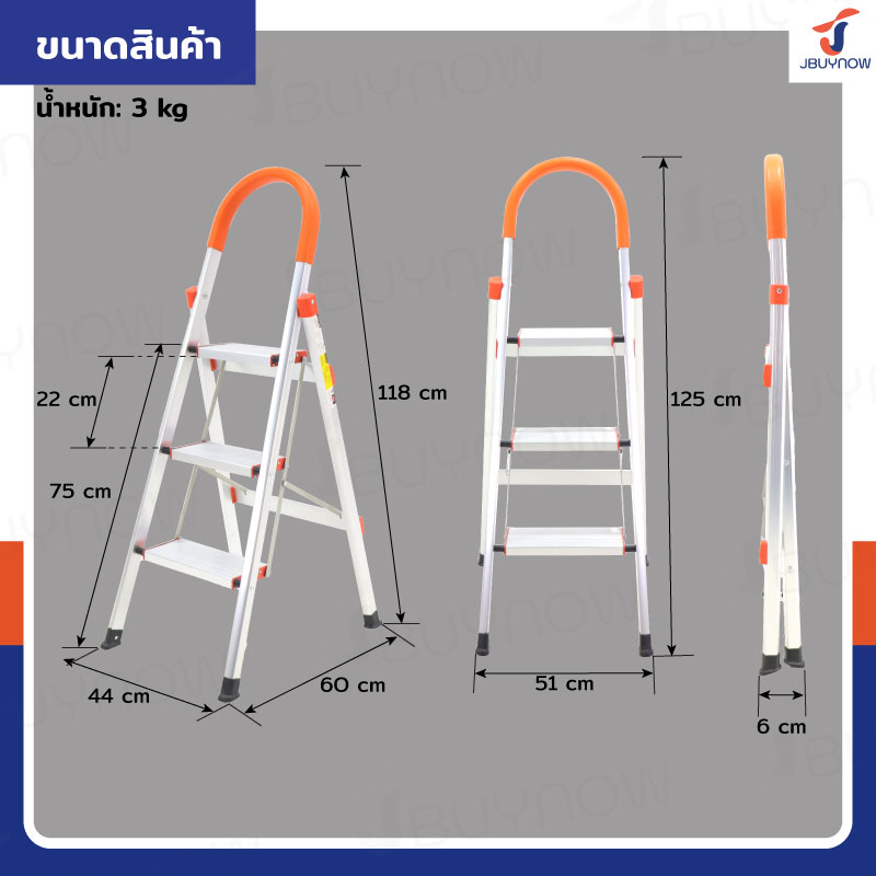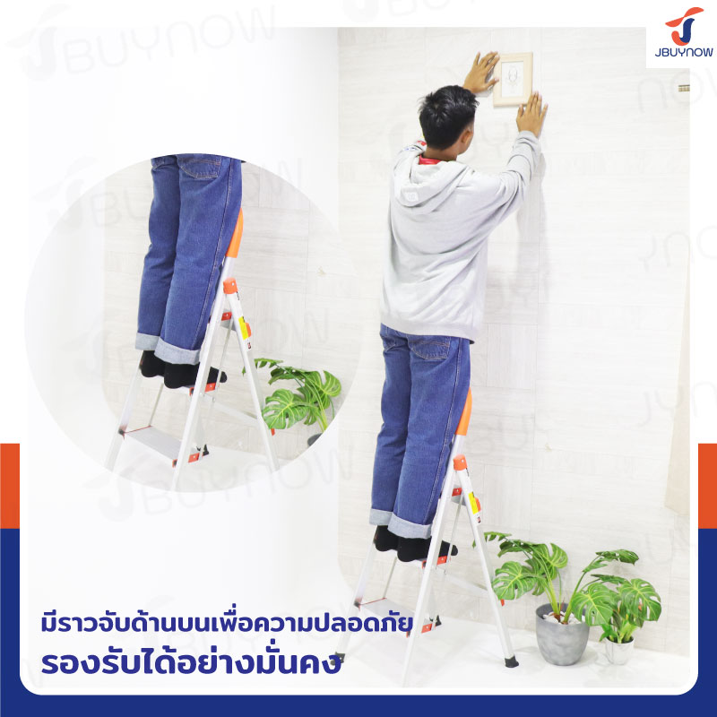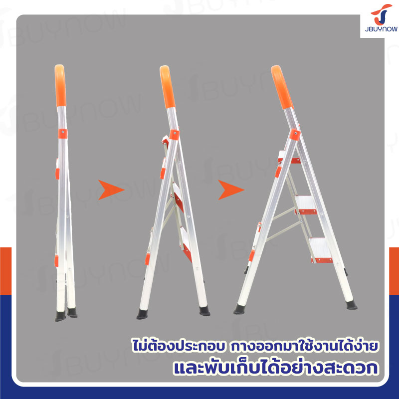บันไดอลูมิเนียมพับเก็บได้ 3 ขั้น มีราวจับ รับน้ำหนักได้ 150 kg สีส้มเข้ม JBUYNOW DL-3