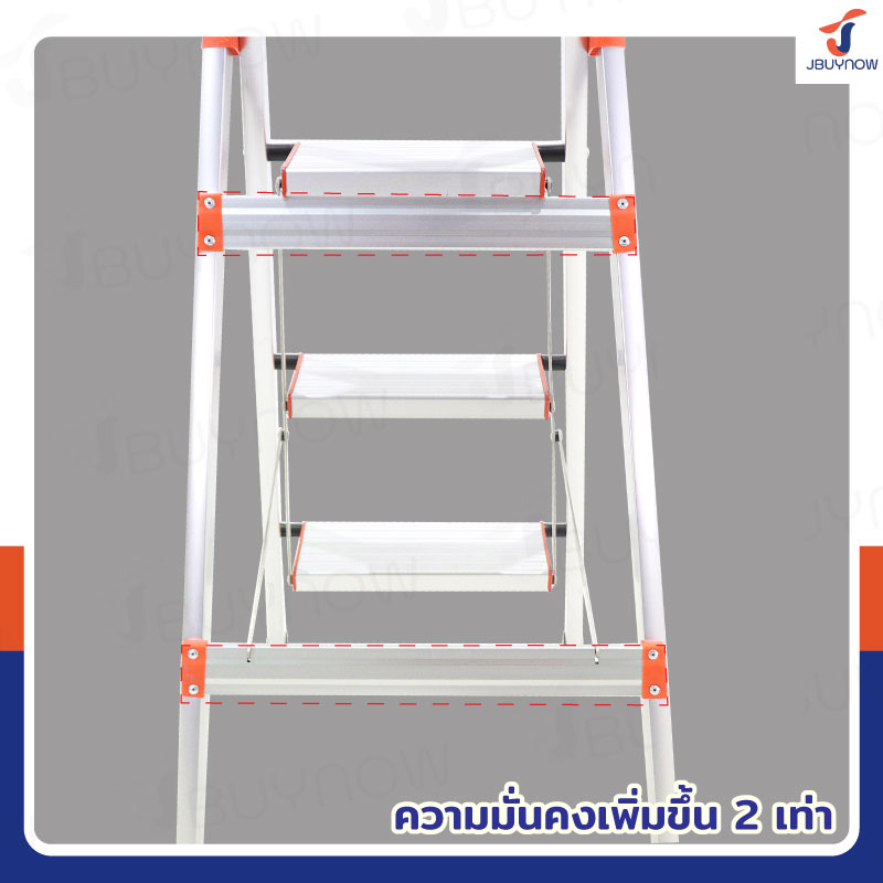 บันไดอลูมิเนียมพับเก็บได้ 4 ขั้น มีราวจับ รับน้ำหนักได้ 150 kg สีส้มเข้ม JBUYNOW DL-4