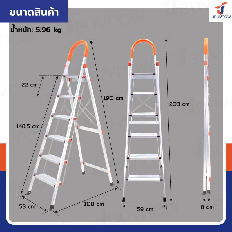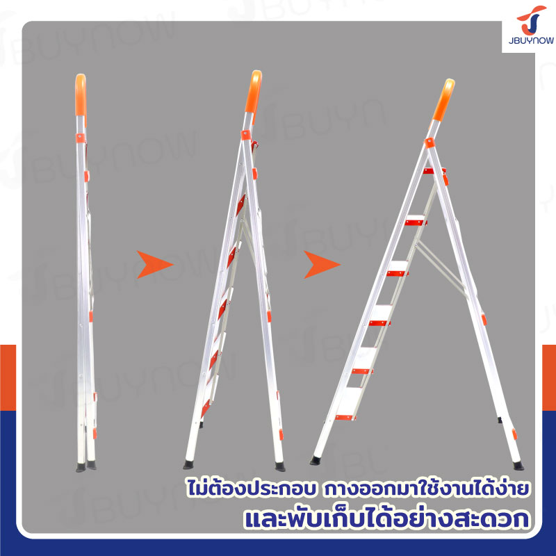 บันไดอลูมิเนียมพับเก็บได้ 6 ขั้น มีราวจับ รับน้ำหนักได้ 150 kg สีส้มเข้ม JBUYNOW DL-6