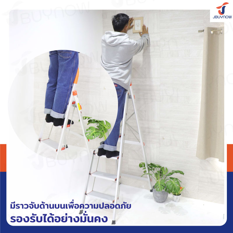 บันไดอลูมิเนียมพับเก็บได้ 4 ขั้น มีราวจับ รับน้ำหนักได้ 150 kg สีส้มเข้ม JBUYNOW DL-4