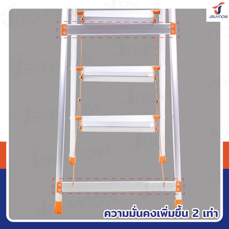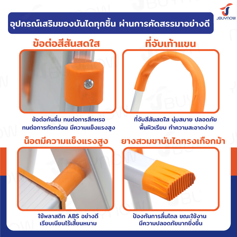 บันไดอลูมิเนียมพับเก็บได้ 4 ขั้น มีราวจับ รับน้ำหนักได้ 150 kg สีส้ม JBUYNOW DLB-4