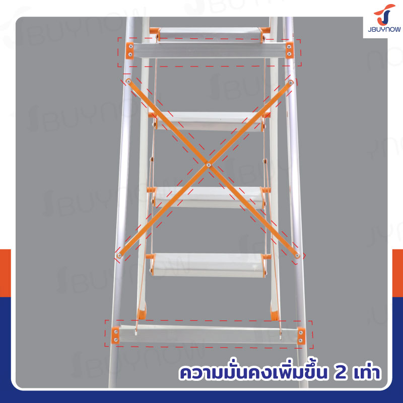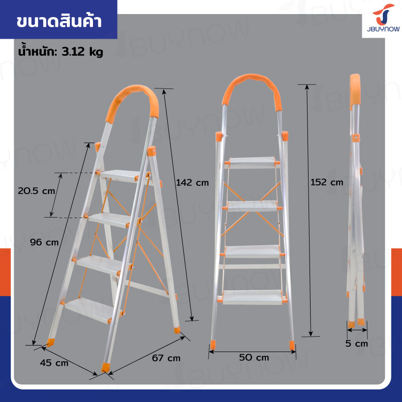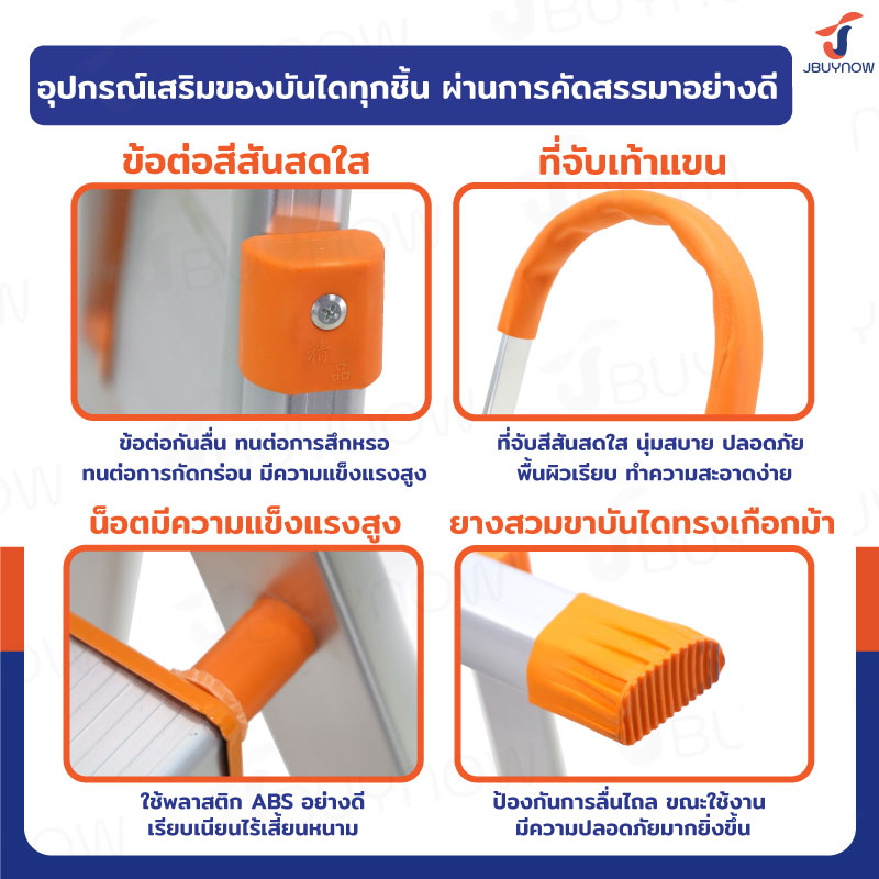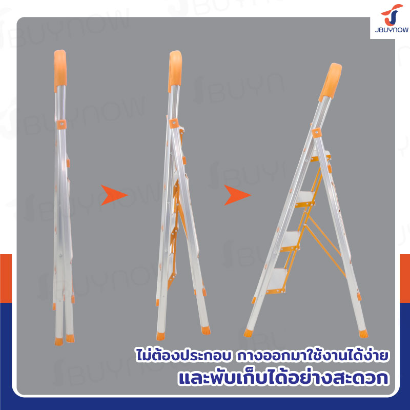 บันได อลูมิเนียม พับเก็บได้ 4 ขั้น 1.4 เมตร มีราวจับ รับน้ำหนักได้ 150 kg สีส้ม JBUYNOW DLB-4