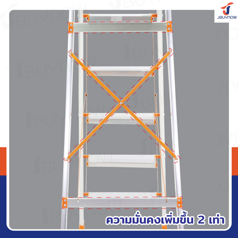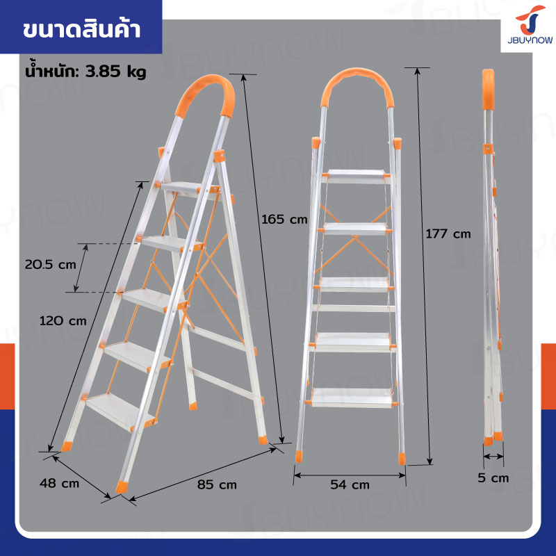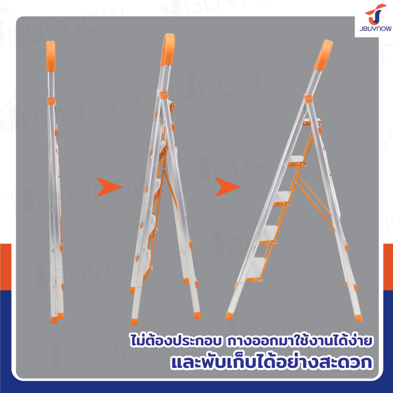 บันไดอลูมิเนียมพับเก็บได้ 5 ขั้น มีราวจับ รับน้ำหนักได้ 150 kg สีส้ม JBUYNOW DLB-5