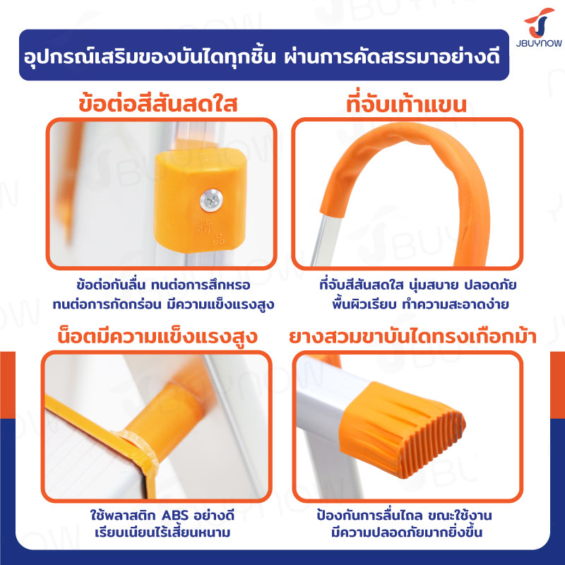 บันไดอลูมิเนียมพับเก็บได้ 4 ขั้น มีราวจับ รับน้ำหนักได้ 150 kg สีส้ม JBUYNOW DLB-4