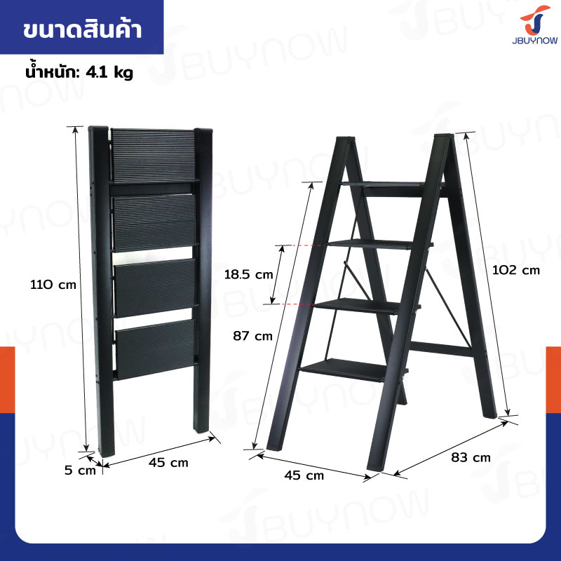 บันไดอลูมิเนียม 4 ขั้น 1 เมตร แบบพกพา สไตล์มินิมอล สีดำ JBUYNOW HJ-4B