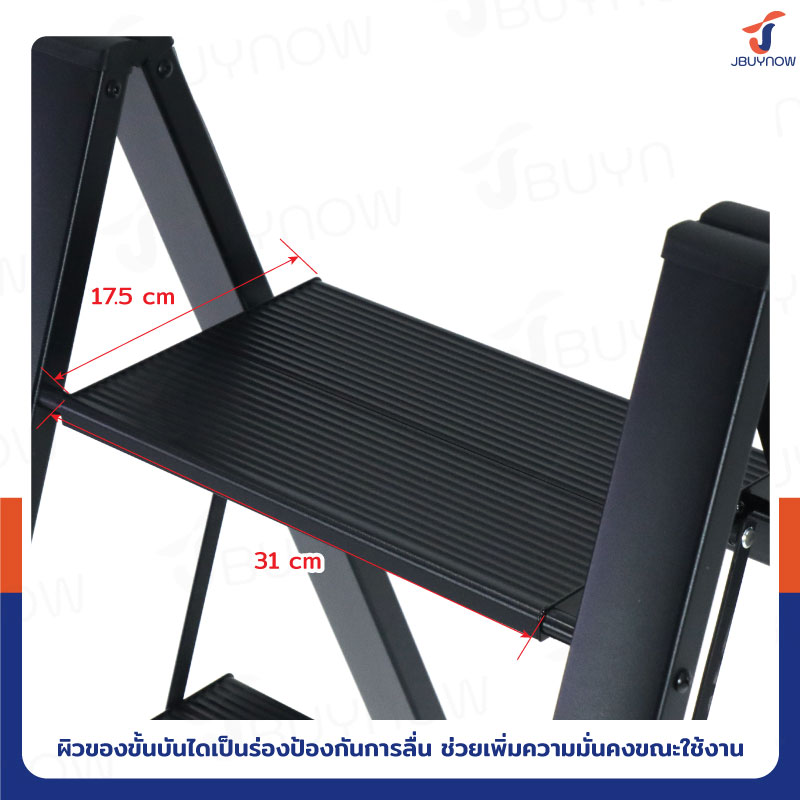 - ผิวของขั้นบันไดเป็นร่องป้องกันการลื่น ช่วยเพิ่มความมั่นคงขณะใช้งาน