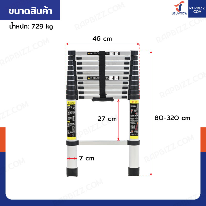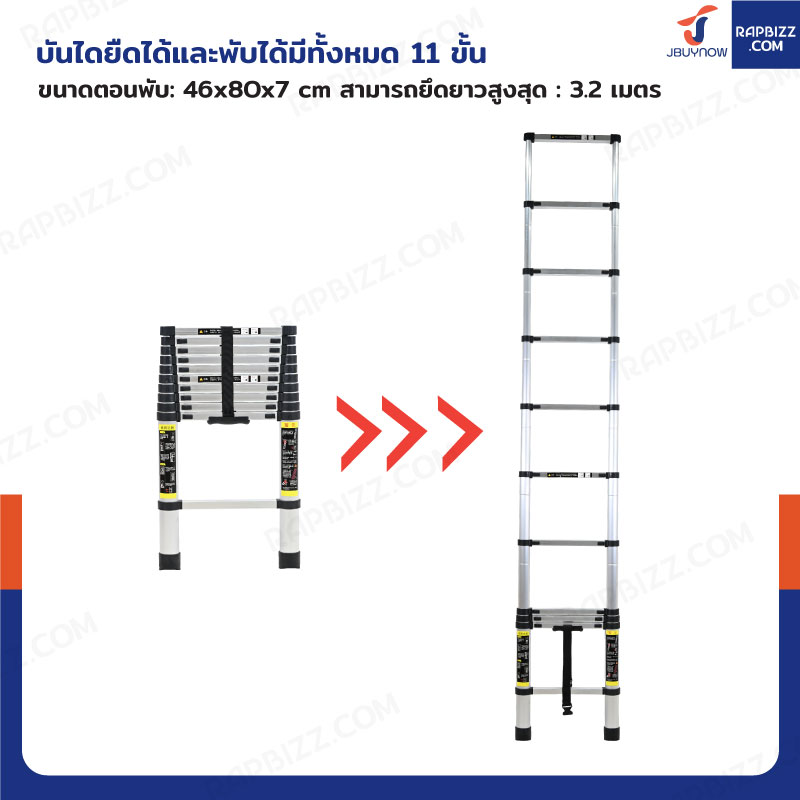 บันไดยืดหดได้ 3.2 เมตร บันได อลูมิเนียม พับได้ ยืดสไลด์ JBYNOW